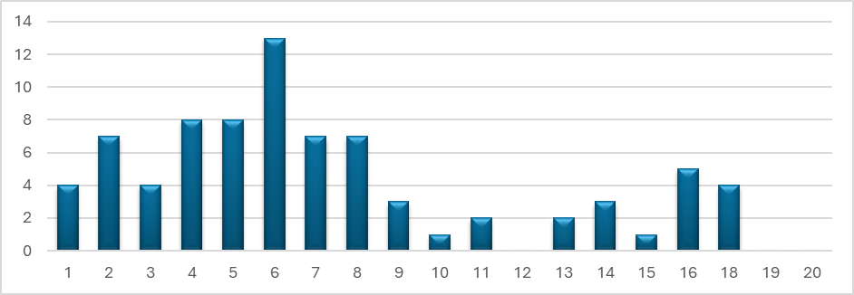 Er is geen eenduidige maat voor de kwaliteit van het areaal. Deze wordt dan ook niet bijgehouden. De leeftijd van de objecten is wel bekend. Dit zegt echter niet alles over de daadwerkelijke kwaliteit. Door technisch onderhoud en tussentijdse updates blijft de kwaliteit goed ondanks de hoger wordende leeftijd. In onderstaand figuur is de leeftijdsopbouw van de verkeerslichten weergegeven (2026). De levensduur van een verkeersregelautomaat is gemiddeld ongeveer 15 jaar afhankelijk van de locatie en de ondersteuning van de leverancier kunnen we vervanging een paar jaar uitstellen.